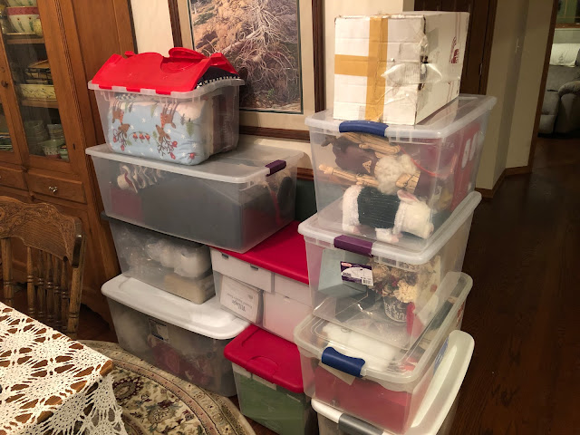 I was going to put the lights in the 3 unlit Dickens Village houses, but my knees are not cooperating right now. Maybe later, or maybe tomorrow.